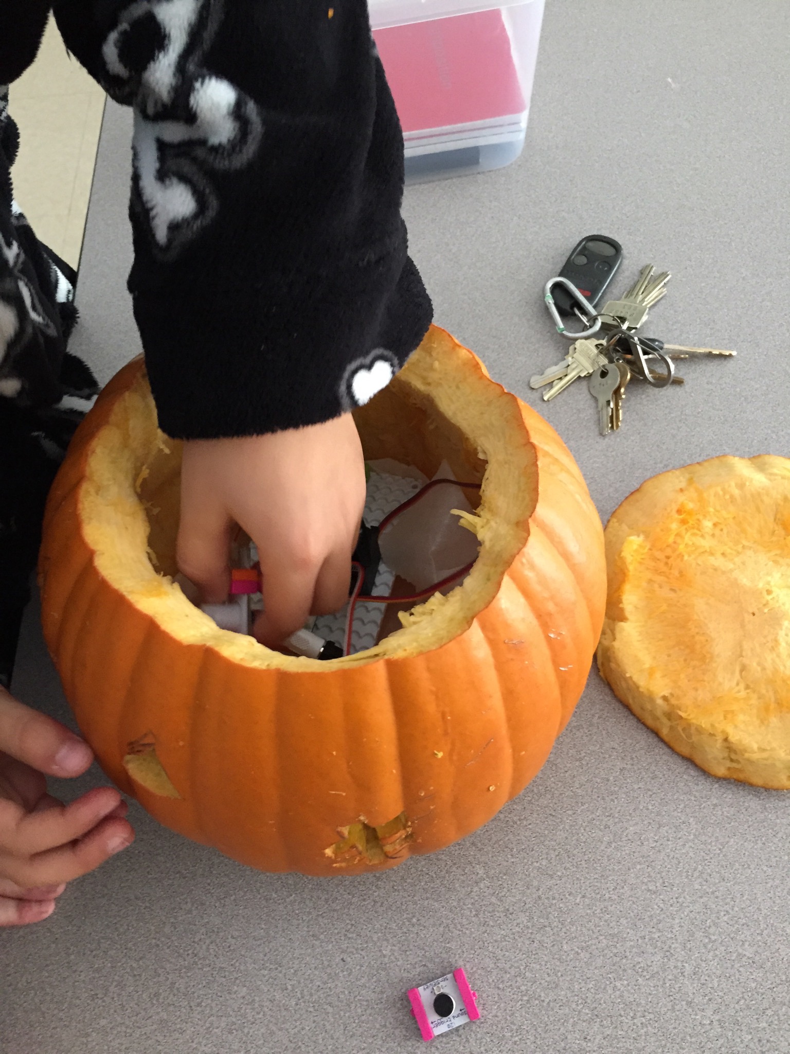 2nd graders created motion activated “Hack-O-Lanterns” using Little Bits and basic circuit/robotic skills in the Oak Grove Makerspace. They light up when someone walks by!