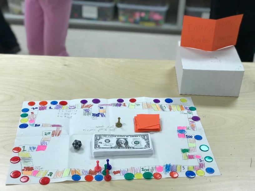 Students in Mrs. Corbett’s 4th Grade class worked together to create board games based on common Prefixes, Suffixes, and Root Words.
